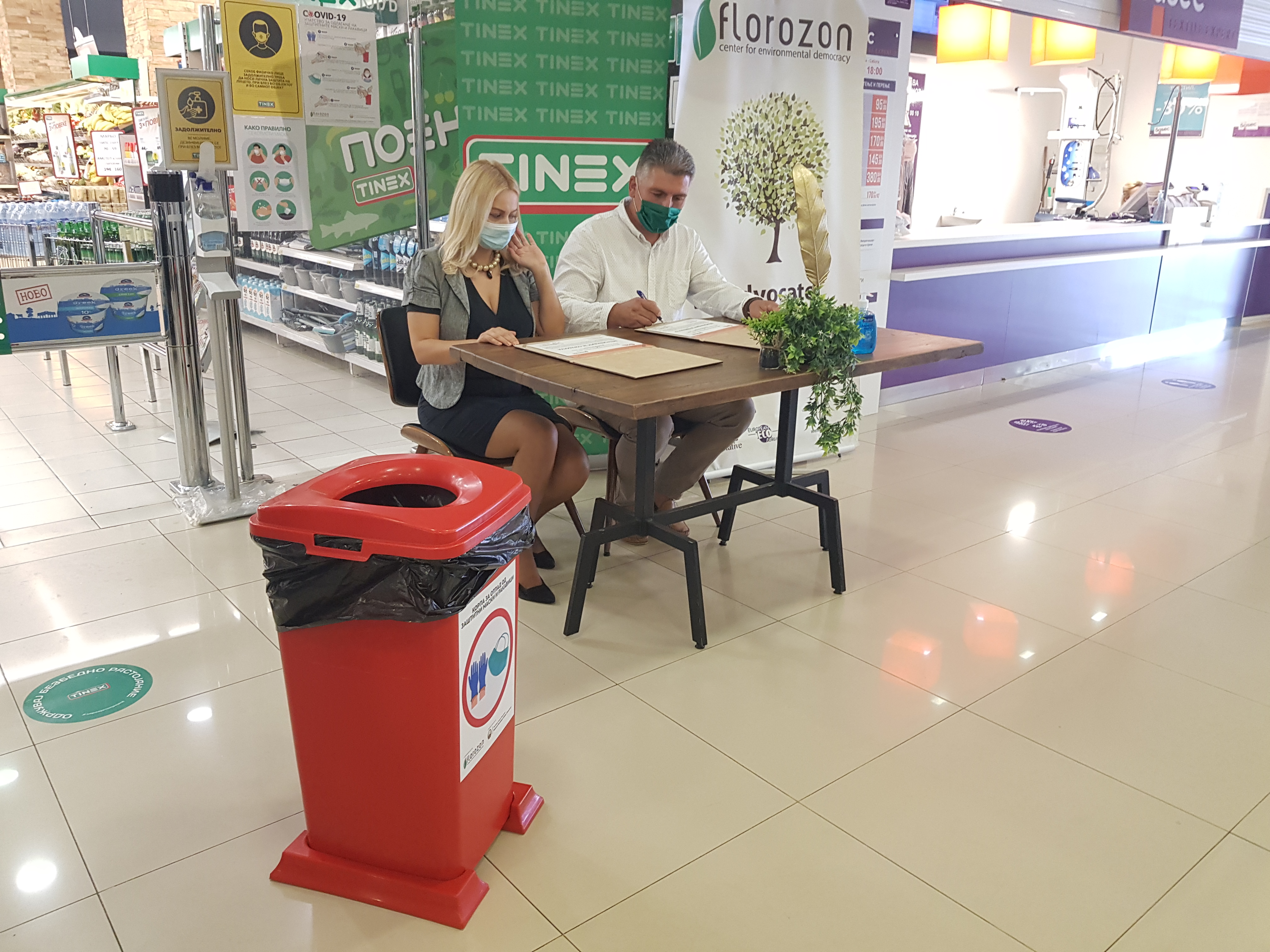 Today, on 12.08.2020, at 10 AM, in t.c. Zebra (Kapishtec) in front of the Tinex market entrance a press conference was held for signing a Memorandum of Cooperation between the CED Florozon, PC Communal Hygiene Skopje and Tinex Markets for the project “Be responsible for yourself and for our env ronment during the pandemic”, financially supported through the Department for Cooperation with Non-Governmental Organizations at the General Secretariat of the Government of the Republic of North Macedonia.